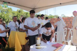 Este é um momento em que as pessoas se unem para construir um espaço Sagrado, onde possam como Povo de Deus celebrar a sua fé. A Pedra Fundamental foi abençoada e simboliza Jesus Cristo, a verdadeira base da Igreja. No local de destaque, foram depositados documentos que registram a história, assinaturas de todos os presentes e medalhas milagrosas, marcando o início da maravilhosa construção que está começando e marcando a história de todos.