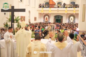 No último domingo do ano de 2025, (28), a Diocese de Óbidos celebrou o encerramento do Ano Jubilar com uma concentração na praça José Veríssimo, acolhendo inúmeros fiéis que vieram das Paróquias e Áreas Missionárias, onde caminharam até a Catedral, durante o percurso, a Cruz foi levada pelas pessoas, casais e famílias. Em seguida, foi realizada a Santa Missa presidida pelo Bispo Diocesano, Dom Bernardo Johannes. A celebração contou com a presença dos Padres, Diáconos, seminaristas, e inúmeros fiéis da nossa Igreja Particular.