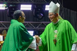 Durante seu momento de fala, o Bispo Dom Bernardo, agradeceu à todos os presentes das 148 comunidades que compõem a Paróquia, estendeu seus agradecimentos a Congregação do Verbo Divino, em especial ao Pároco Antônio Rodrigues, por ter aceitado a missão de guiar uma das maiores Paróquias de nossa Diocese. No ensejo, o Prefeito Municipal de Alenquer, Tom Silva, direcionou palavras de boas vindas ao novo Pároco, reforçou o seu compromisso em colaborar com os projetos da Paróquia e da Diocese.